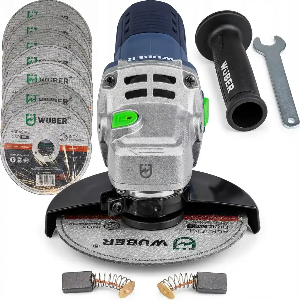Болгарка (кутова шліфувальна машина) Wuber 1600Вт 125мм + набір 10 дисків 125мм (Польща)