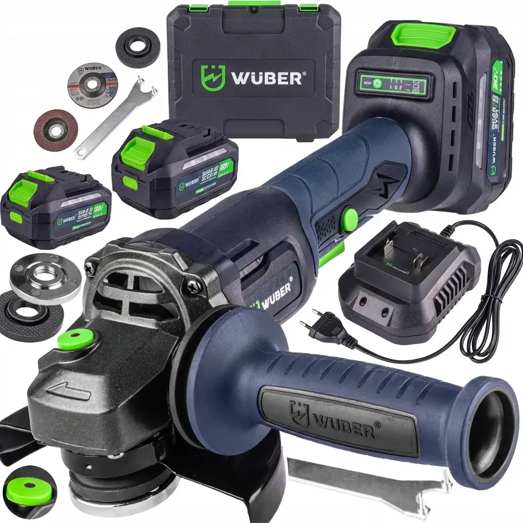 Акумуляторна болгарка Wuber із двома батареями — повна мобільність без дротів. Зарядний пристрій у комплекті.