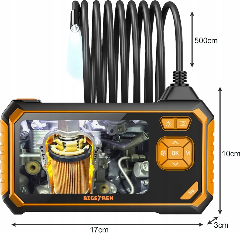 - ЕКРАН- ендоскоп останнього покоління з власним екраном, на якому зображається вигляд із камери!Вбудований великий і читаний HD РК-екран із діагоналлю 4,3 дюйма,який забезпечує набагато кращий огляд з об’єктива, у найвищій якості Full HD, 2 мільйони пікселів. Продукт не вимагає встановлення спеціальних програм. Після увімкнення він відразу готовий до роботи. Пристрій допоможе Вам заощадити час і нерви в роботі!