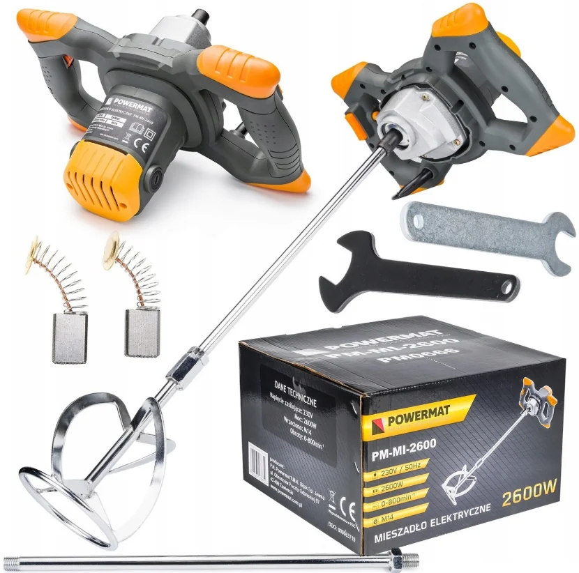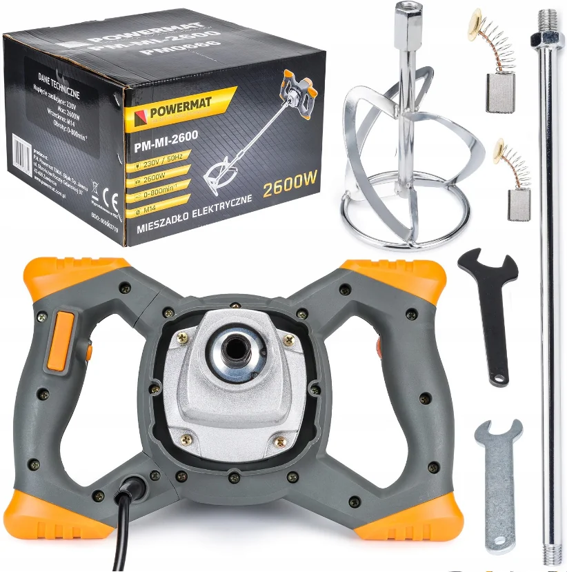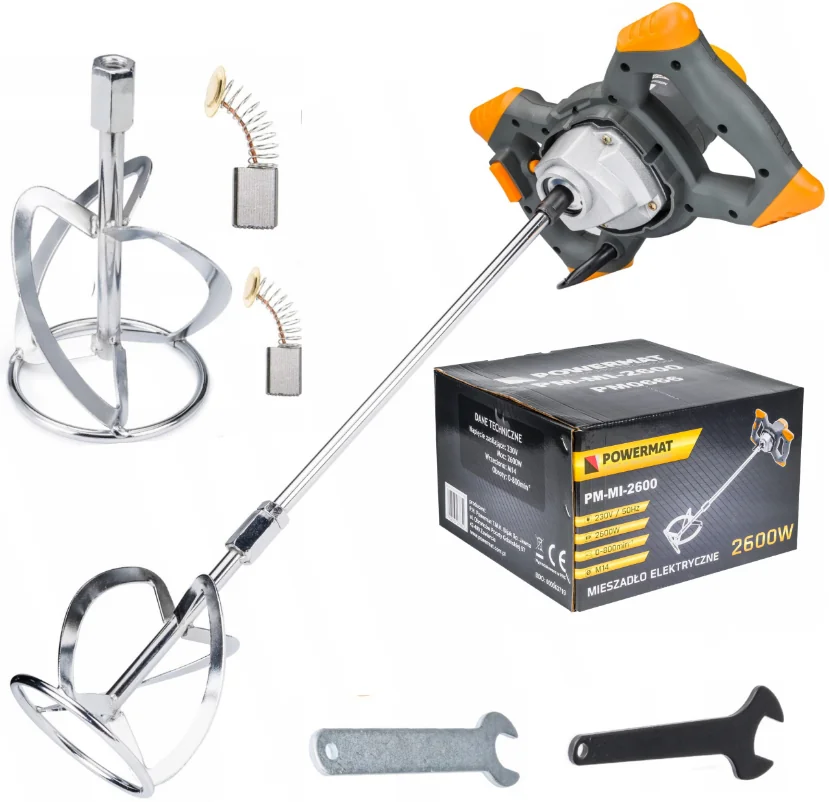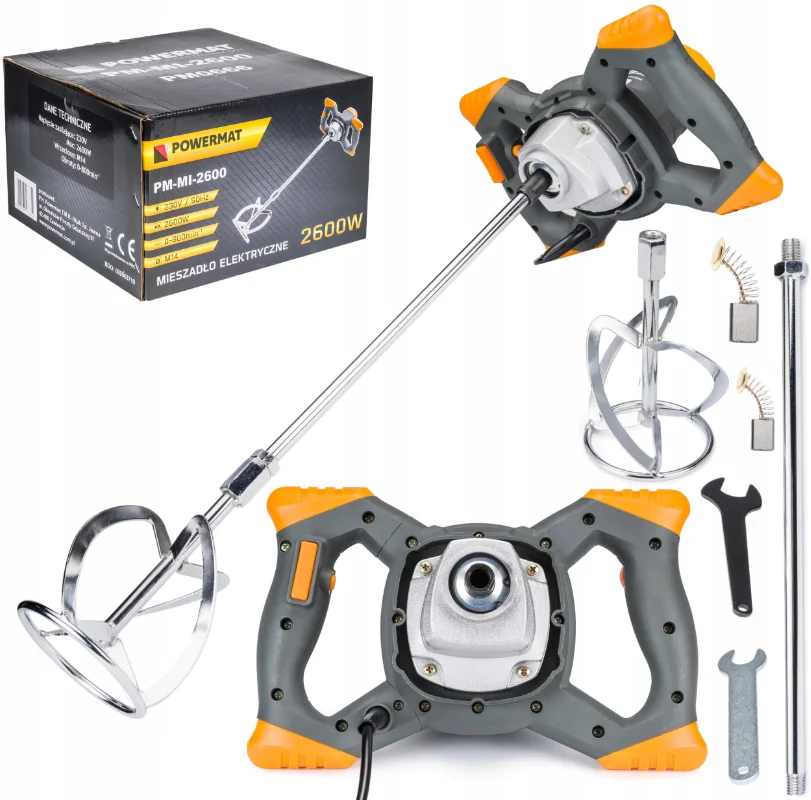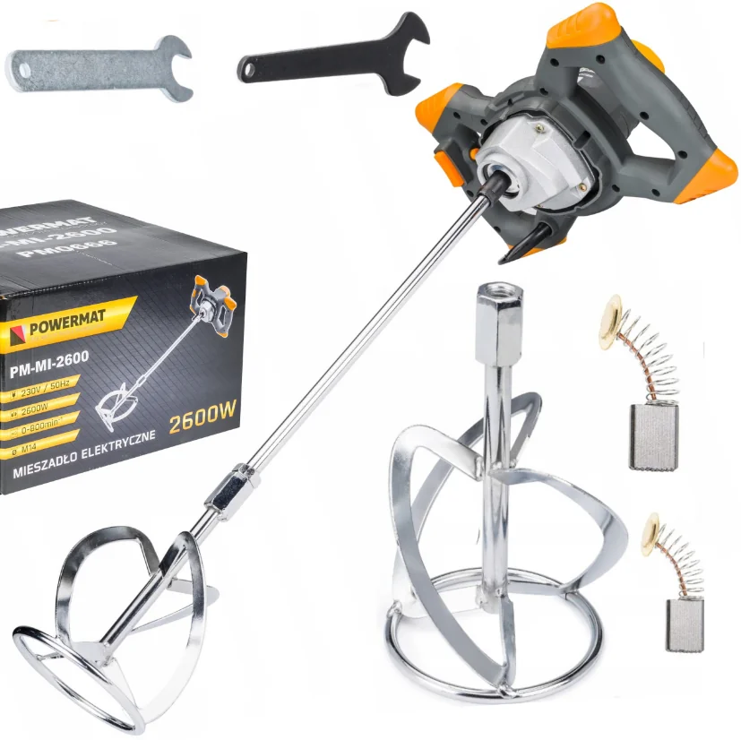 PM-MI-2600- це високопродуктивний міксер для фарб і розчинів, який незамінний для змішування рідких і пиляльних будівельних матеріалів. Цей надійний міксер має6-ступеневе регулювання швидкості та вирізняється простим керуванням.Він ідеально підходить для змішування фарб, клею, гіпсу, штукатурного розчину, вапняного розчину, цементного розчину, епоксидних смол, негорючих хімічних речовин тощо.
