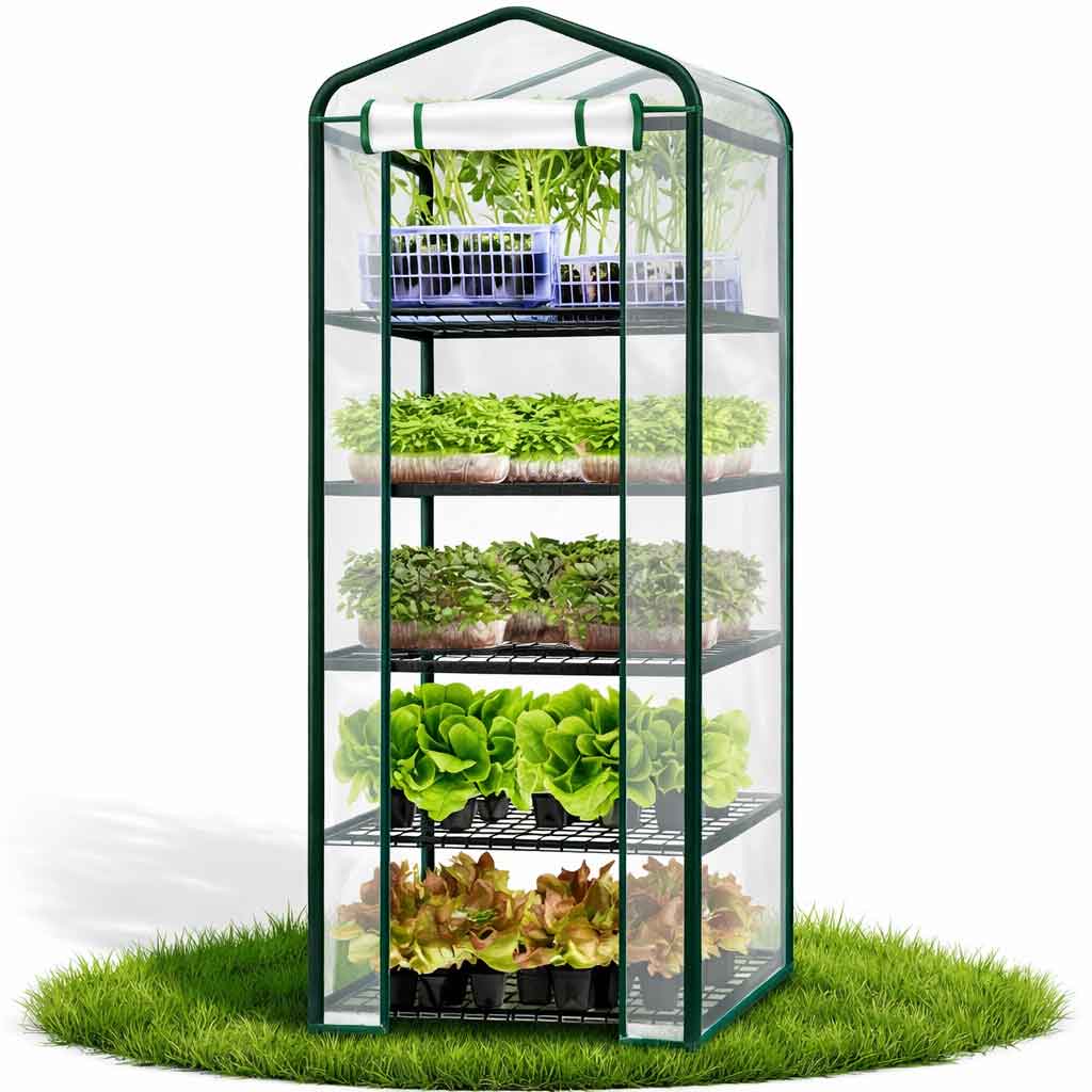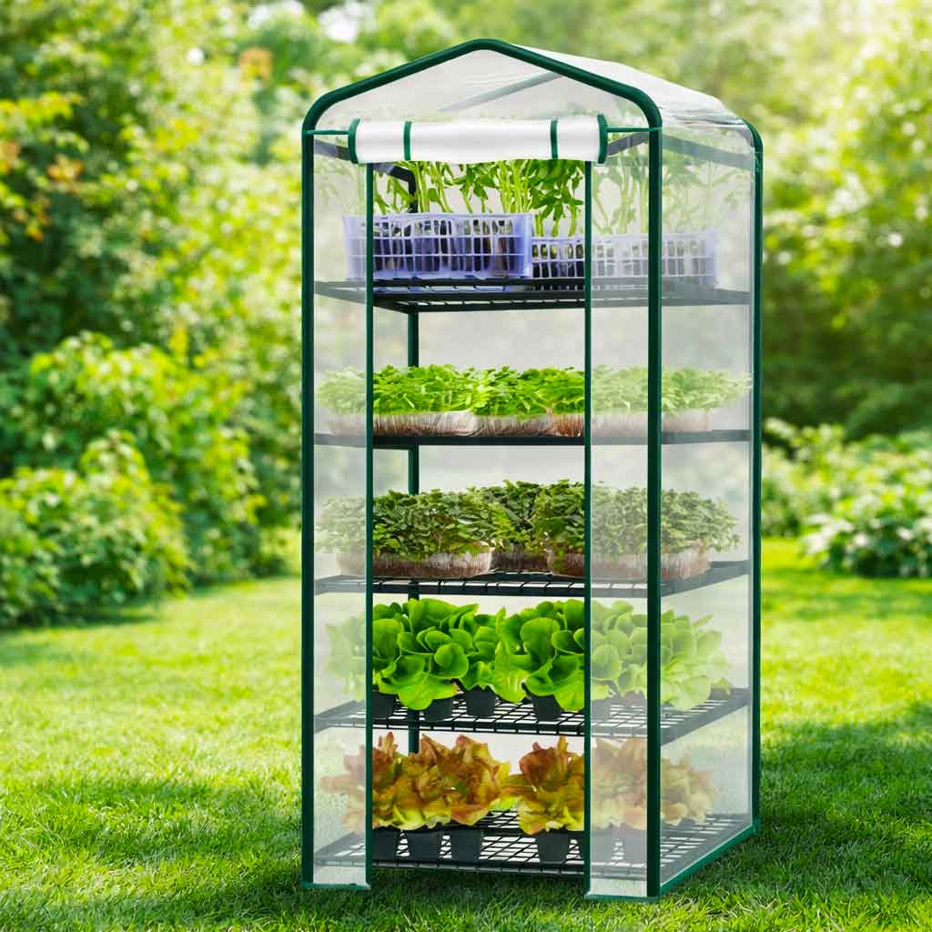 Міні-теплиця з фолії із полицями — 5 полиць S13126 / 23359 парник — компактна теплиця для дому, балкона та саду