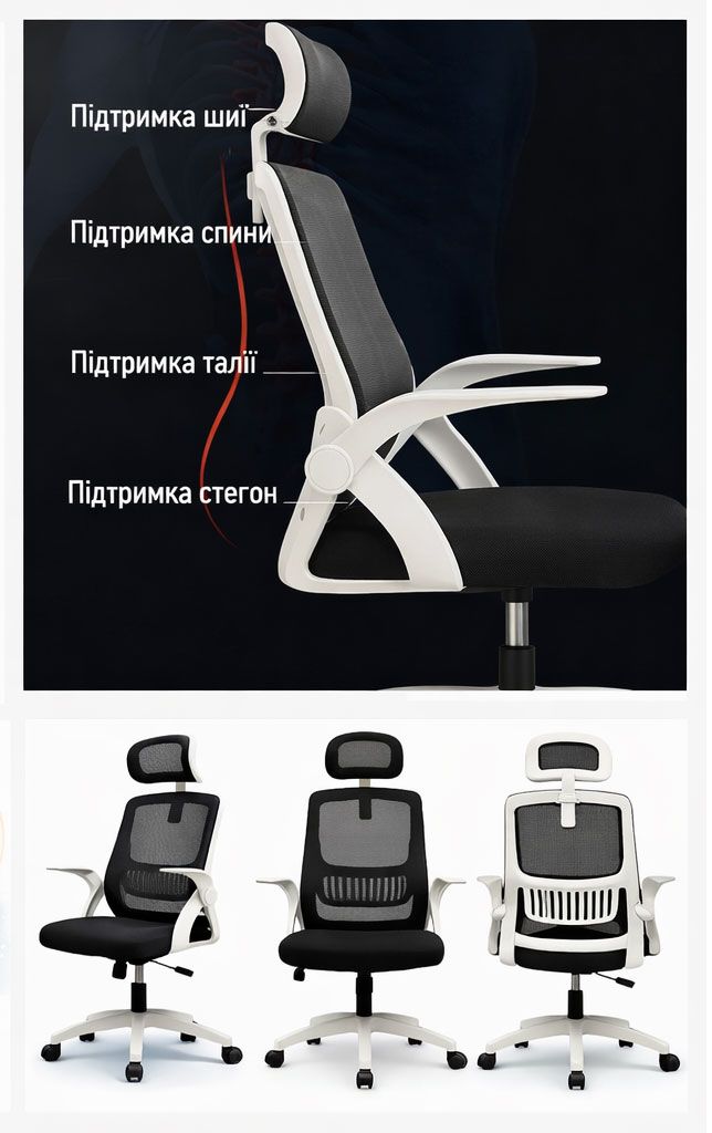 Офісне крісло ергономічне Diego ErgoFlex сітка біло-чорне — це правильний вибір для тих, хто хоче інвестувати у здорову спину, продуктивність і комфорт на роки.