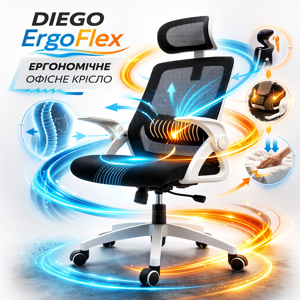 Якщо ви шукаєте ергономічне офісне крісло з сіткою та латексним сидінням, яке не втратить форму через кілька місяців, Diego ErgoFlex стане оптимальним рішенням. Воно поєднує сучасний дизайн, довговічні матеріали та продуману ергономіку для щоденного використання.