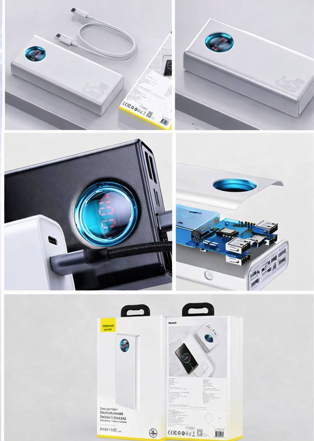 Якщо вам потрібен потужний павербанк 30000 мАг із швидкою зарядкою 65W, який здатний заряджати ноутбук, смартфон і ще кілька пристроїв одночасно — Baseus Amblight стане оптимальним вибором. Велика ємність, сучасні стандарти швидкої зарядки, цифровий дисплей і високий рівень безпеки роблять його універсальним рішенням для дому, роботи та подорожей.