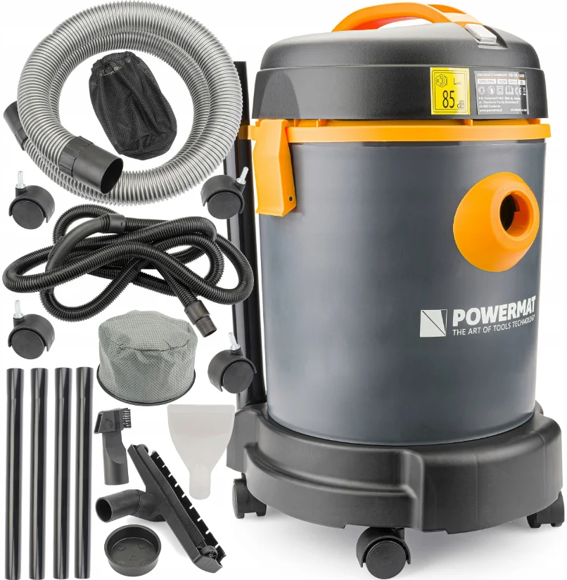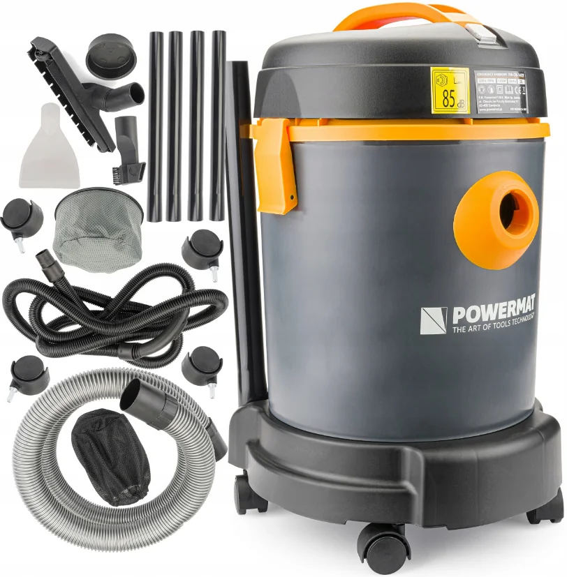 Промисловий пилосос Powermat 1600Вт із баком 25 л ідеальний для майстерень і прибирання після ремонту. Потужний і витривалий.