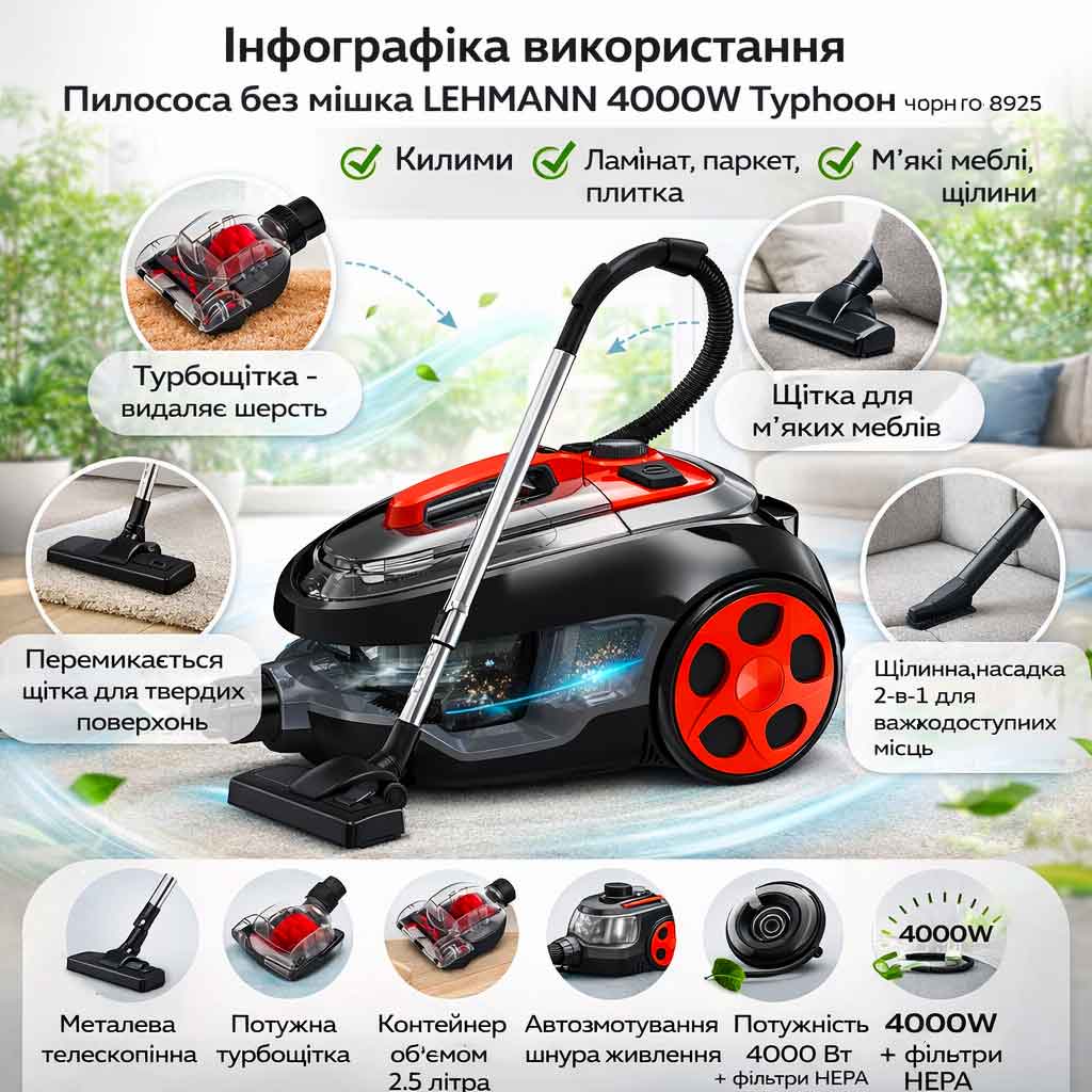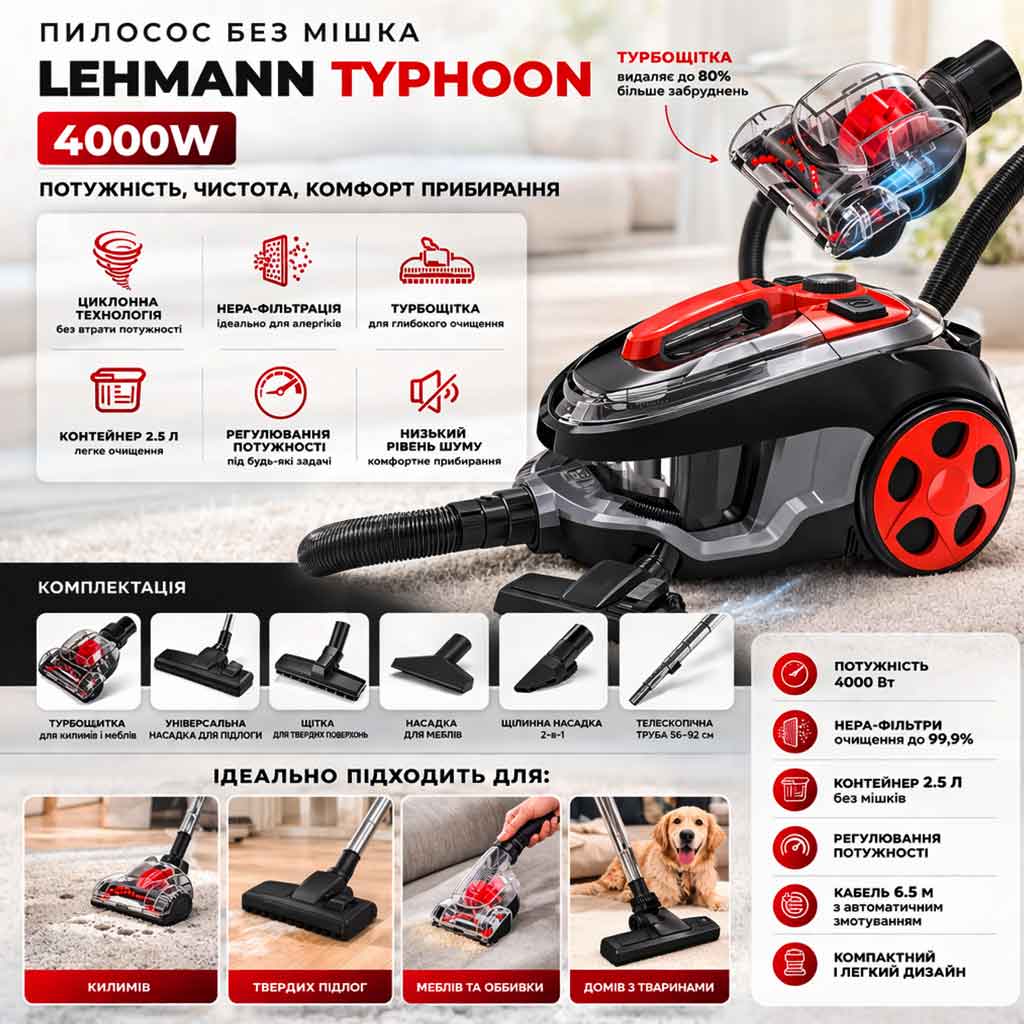 Основні переваги пилососа LEHMANN Typhoon 4000W