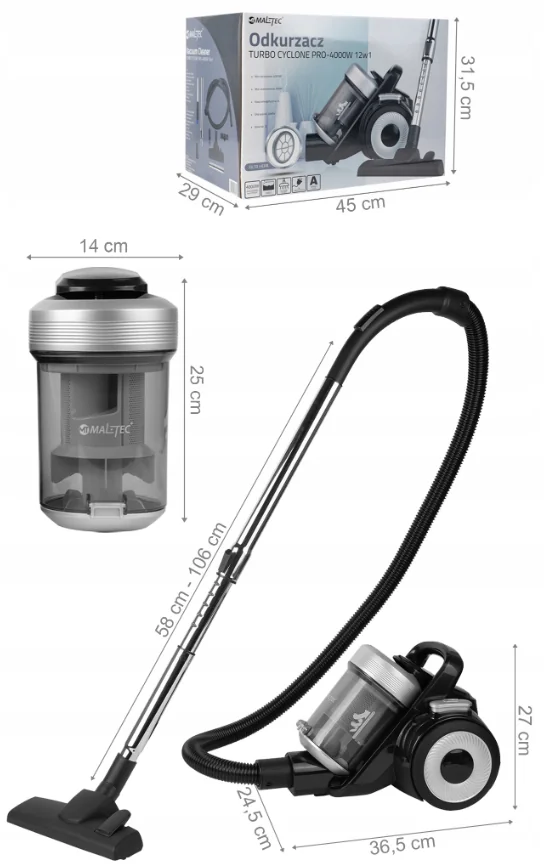 Компанія MALTEC завжди використовувала у своїх пристроях компоненти найвищої якості! Ми дбаємо про безпеку та комфорт наших споживачів.Пилосос TURBO CYCLONE PRO-4000W 12in1 вирізняється найвищою ефективністю й довговічністю!Ніколи пилососити не було так весело! Уявіть собі зручну техніку, яку можна без зусиль заховати в кожному куточку будинку. Ви також позбудетеся обов’язків купувати та наполегливо міняти сумки.Вільно переходьте будинком. Довгий кабель і набір аксесуарів дадуть змогу пилососити будь-де.Тепер усе це в межах вашої досяжності! Перевірте і переконайтеся самі!