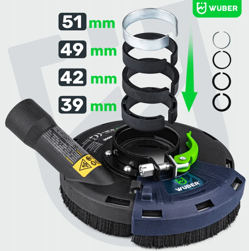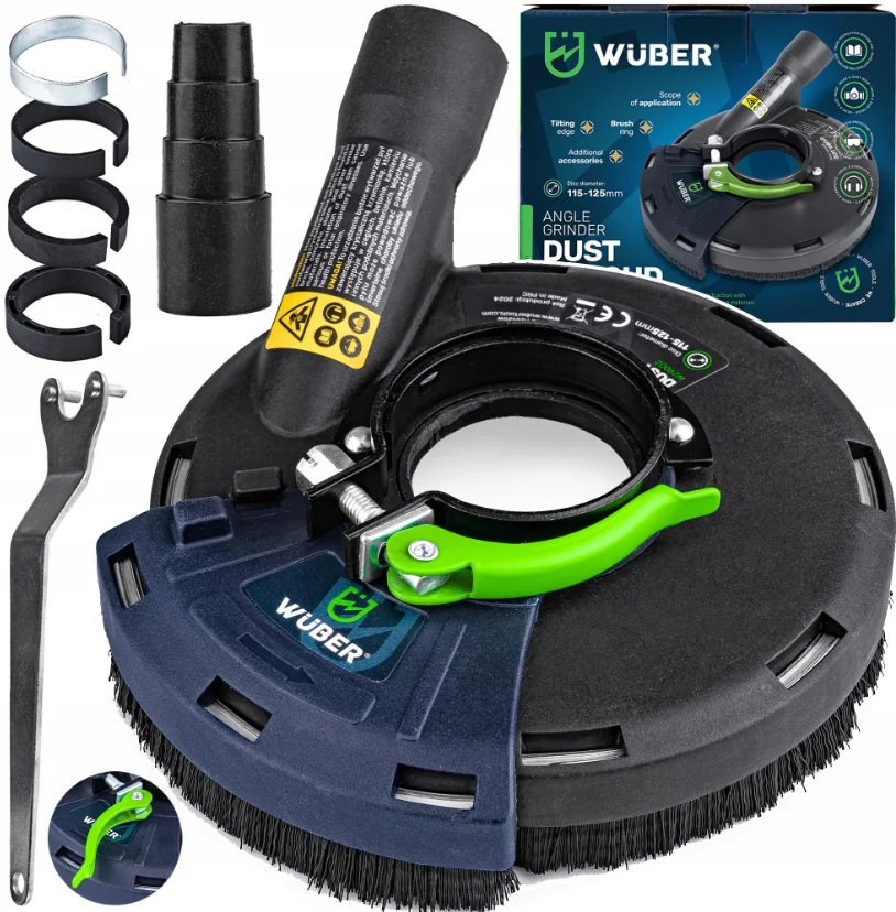 Кожух Wuber 115–125 мм захищає від пилу під час шліфування. Підходить до більшості КШМ, легко встановлюється.