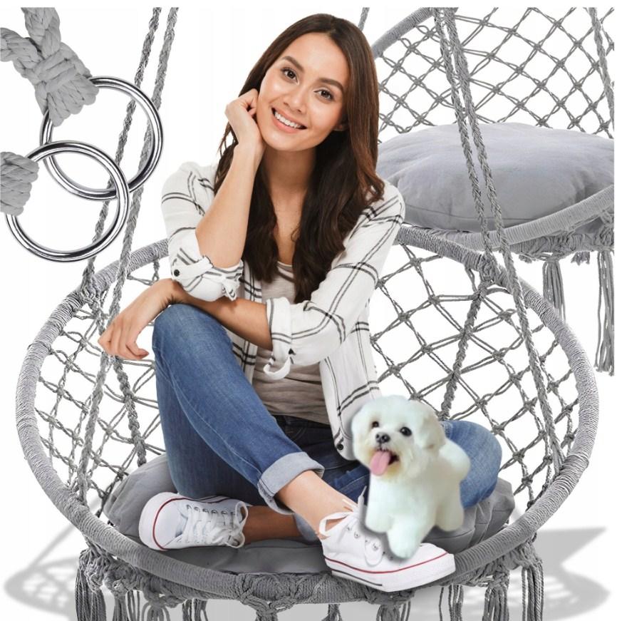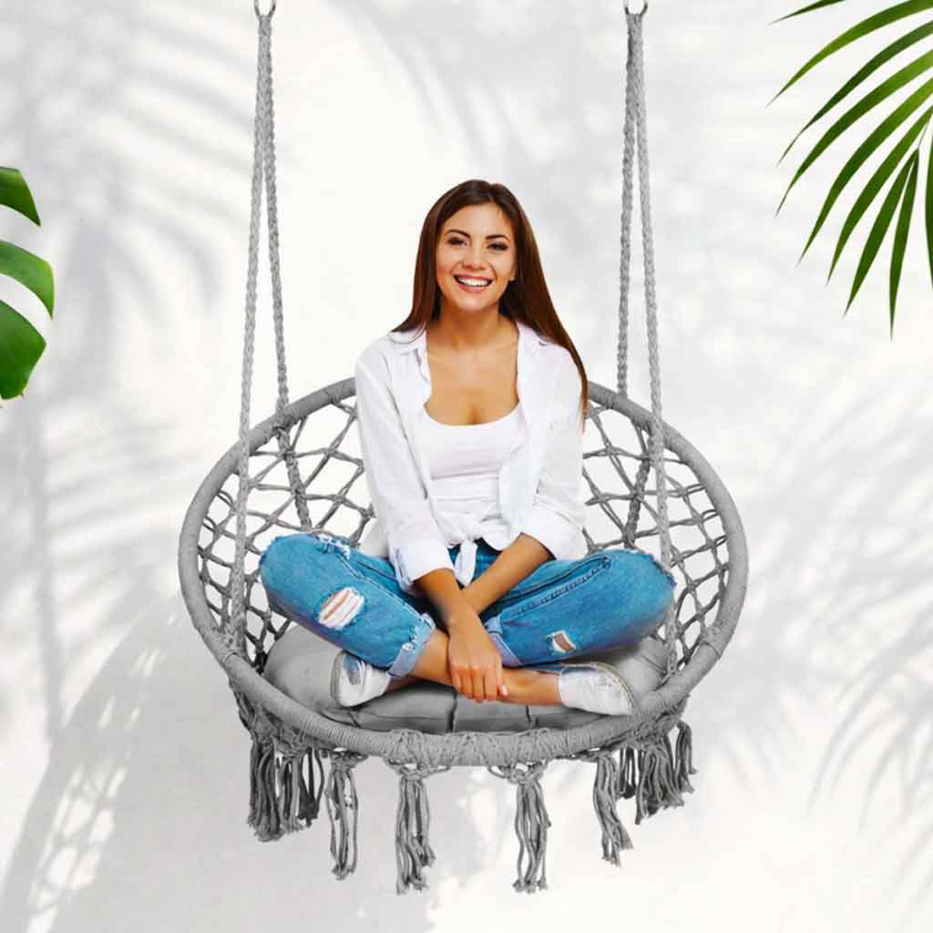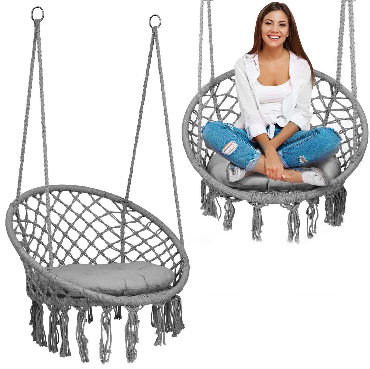 Садове підвісне крісло-качалка BOHO з подушкою сірий 290010 — це ідеальне рішення для тих, хто шукає