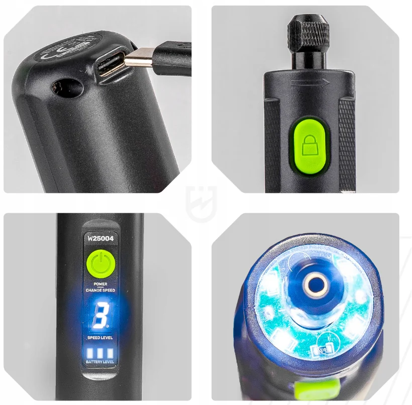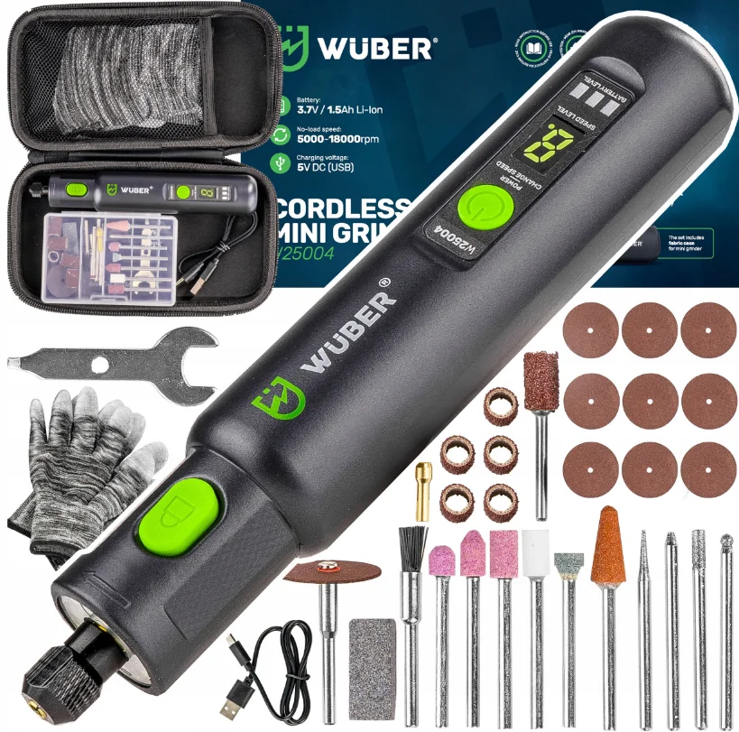Швидкість обертання до18 000 об/хв►6 режимів роботи►Зарядка через USB►Повний комплект аксесуарів►Тривалий час роботи►Багатофункціональна►Для різних завдань►Мережевий кабель у комплекті