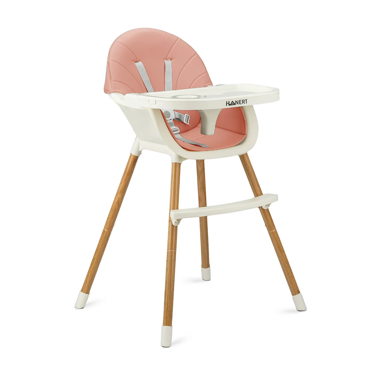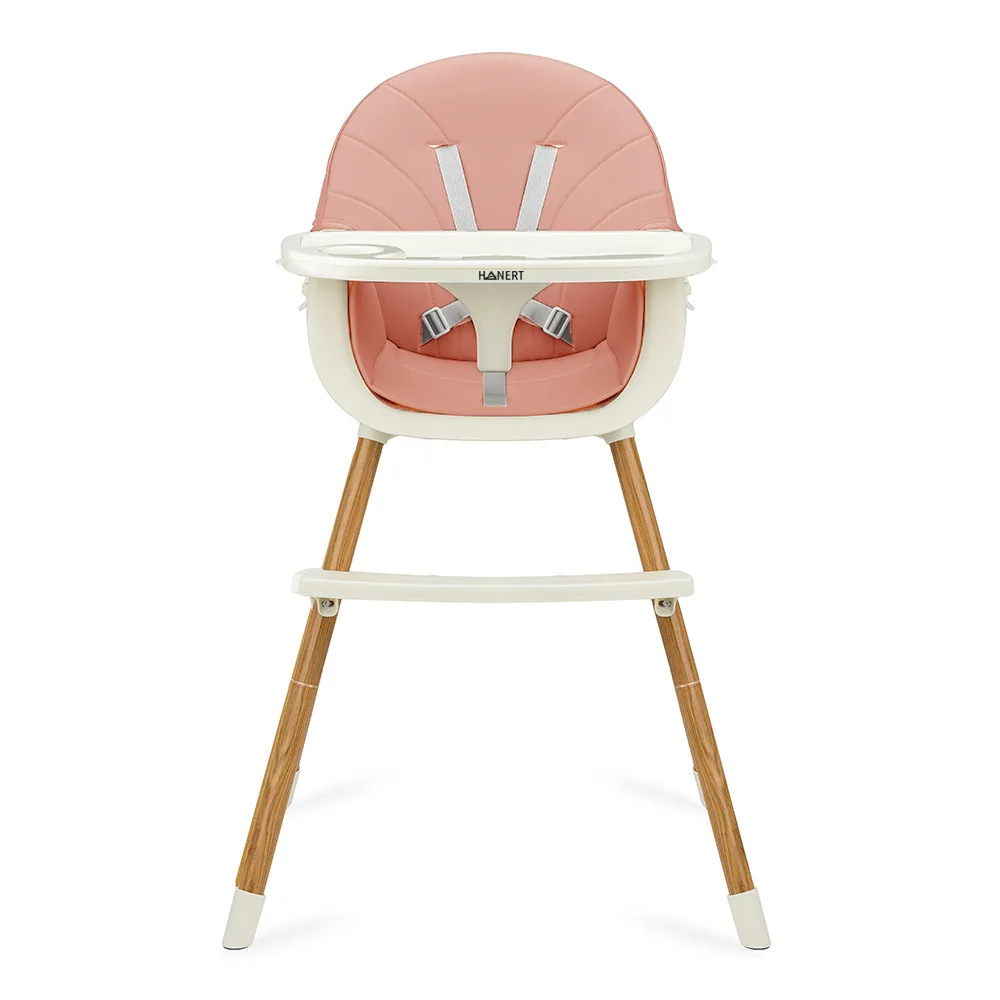 Рожевий стільчик Hanert Liebe 2в1 — практичний і стильний аксесуар для годування. Має ремені безпеки, м’яке сидіння та піднос.