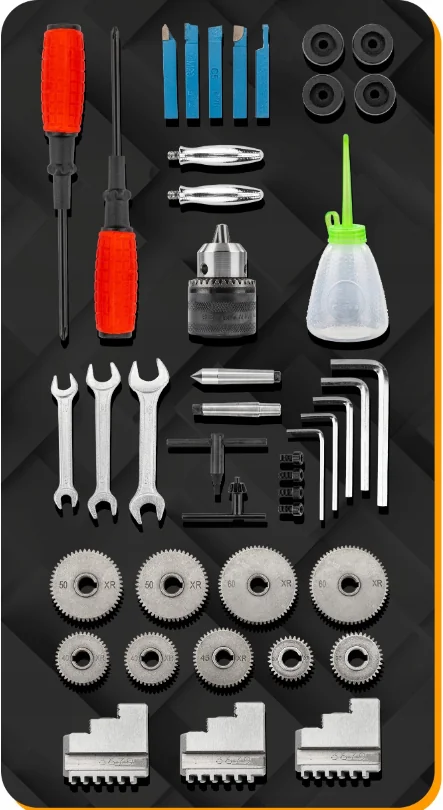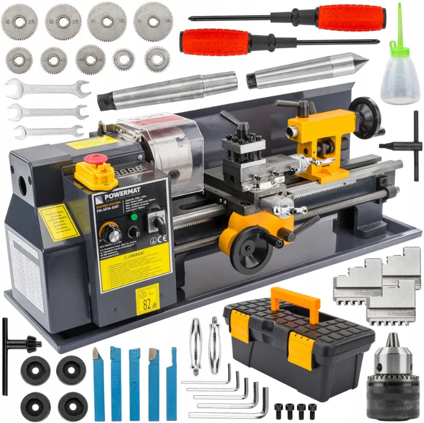 Потужний прецизійний настільний мінітокарний верстат, що ідеально підходить для професійних проєктів, забезпечує повний контроль над точенням, свердлінням і нарізуванням різі. Завдяки міцній конструкції та покращеним металевим шестерням він гарантує довговічність і надійність.Регульована швидкість обертання шпинделя (0-2500 об./хв) і цифровий екранполегшують роботу в різних умовах. Чотирипозиційна інструментальна стійка та регульована задня бабка забезпечують точність і гнучкість операцій, а міцна конструкція підвищує ефективність роботи.