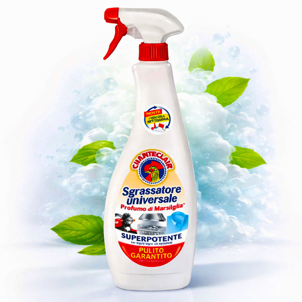 Універсальний обезжирювач спрей ChanteClair 600мл марсельське мило — це професійний мийний засіб італійської якості для ефективного очищення кухні, ванної кімнати, меблів та текстилю. Формула Chanteclair Sgrassatore Universale Profumo di Marsiglia швидко розчиняє жир, нагар, стійкі плями та щоденні забруднення, залишаючи приємний аромат марсельського мила.