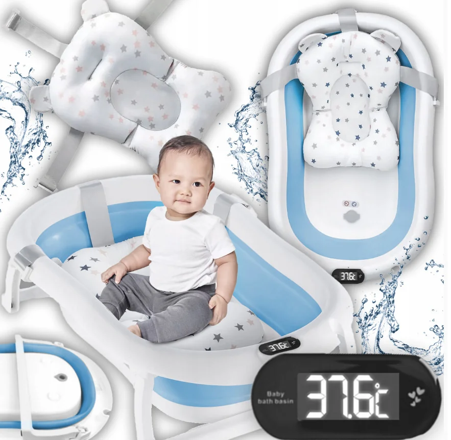 Дитяча ванночка складана з подушкою, термометром Hanert KinderBad Blue