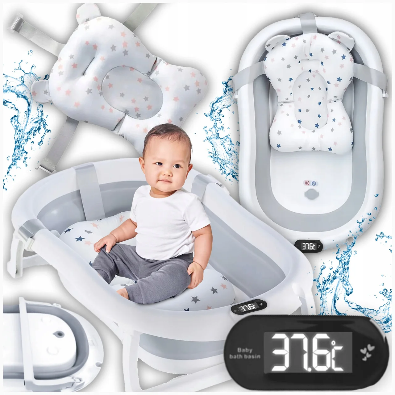 Ванночка складана для малюків з подушкою, термометром Hanert KinderBad Grey